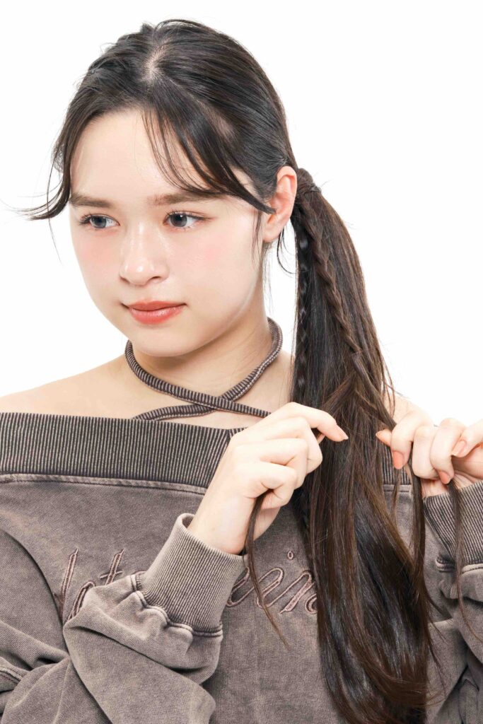 ②そのままでもかわいいけど、毛束の中に2本くらいみつあみを混ぜれば平成ギャルっぽい!