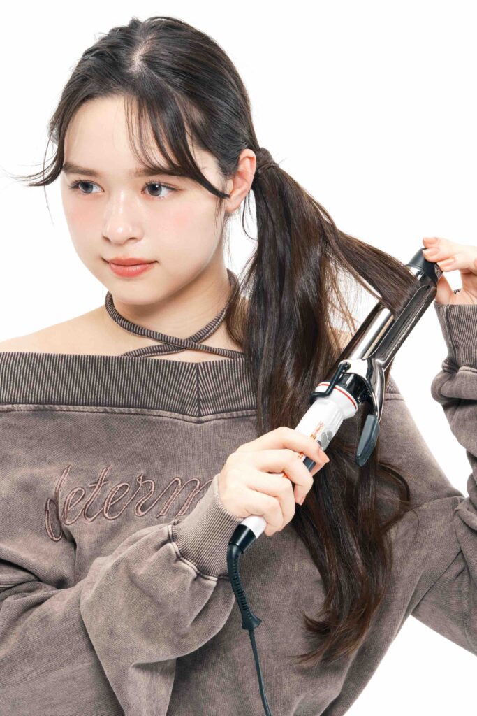 ①姉ギャルに仕上げたいから、太めの36ミリコテでゆるーく巻く!