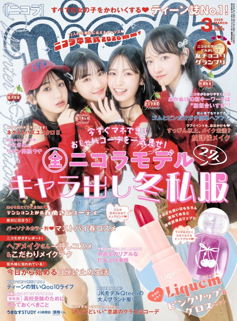 秋冬のトレンドカラー「赤」を前面に押し出した甘めなカジュアルコーデを身にまとった4人は誌面でも大活躍だよ☆さらには3月号の表紙メンバーとの撮影会&リコリリのミニライブ&サイン会と盛りだくさんの発売記念イベントを開催するよ!なんとリコリリのミニライブはフリー観覧OK!詳しくはイベント詳細ページをチェックしてね♡