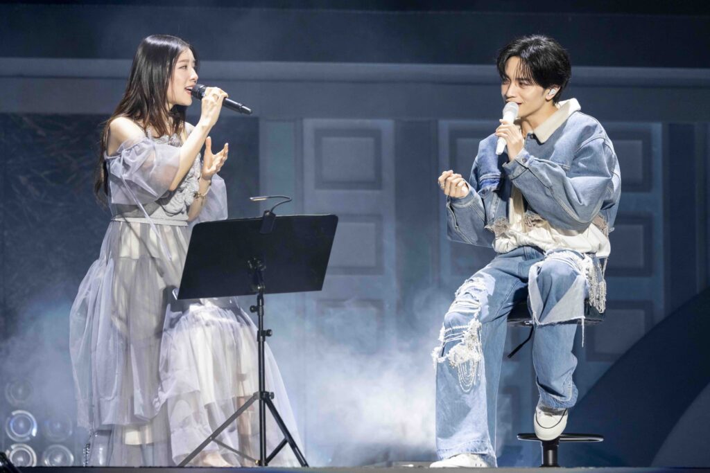 続いて「少年隊さんの『仮面舞踏会』のDNAを受け継いで、それを中島健人イズムで新しい曲として作りました。自分の覚悟が現れている曲です。ようこそ、仮面の世界へ」と曲振りをしてから披露した「XTC」。今回のアルバムのリード曲で、少年隊さんのキレキレのダンスをほうふつとさせる指先までキレイなパフォーマンスにトキメキがとまらない♡しなやかなサビの部分の歌声と、アウトロの激しいダンスパフォーマンスのコントラストも圧巻でした!
