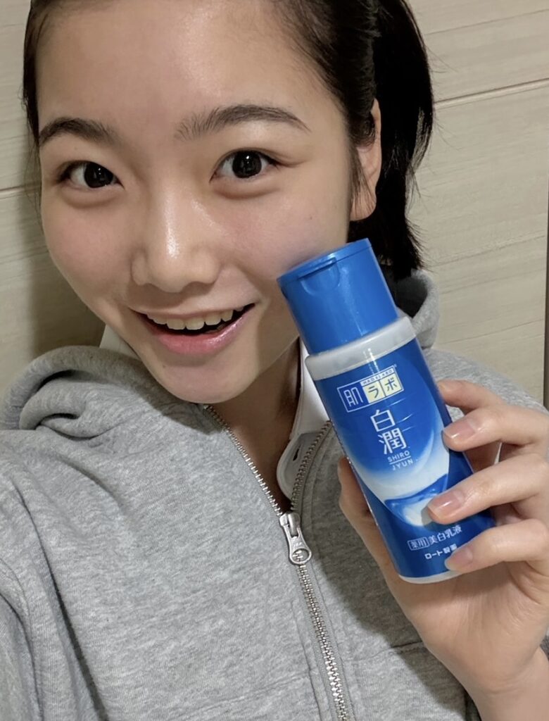 「1年中朝晩使っています。肌が乾燥して敏感なときにも使えて、美白効果もあっておすすめです。私は、洗顔後に拭き取り化粧水をして、そのあとに乳液を塗っています。ちなみに、友達やおばあちゃん家にお泊りに行ったときや旅行のたびに別の容器に入れ替えるのが面倒なので、ずっと持ち運びしやすいお試しサイズを使っています(笑)!」