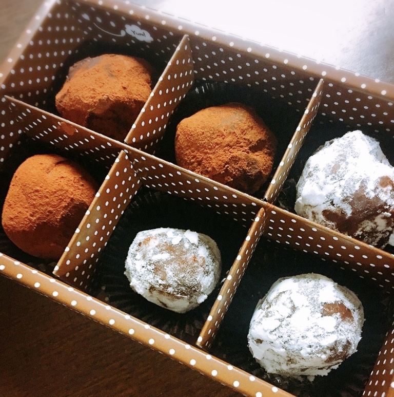 「毎年、トリュフチョコレートを家族で作って父にプレゼントしてます。母も姉も一緒に作ってるから味はとっても美味しいです。丸める過程と、ココアパウダーや粉糖をつける過程が楽しくて好き!小学生のときにはガトーショコラも作ったよ♡」