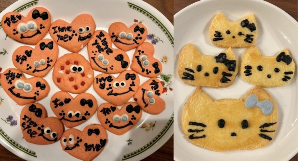 「毎年、チョコレートやクッキーを手作りして友達や家族にプレゼントしています。昨年は、目がついたハートクッキーと、キティちゃんのクッキーの2種類を初めて1人で作りました!」