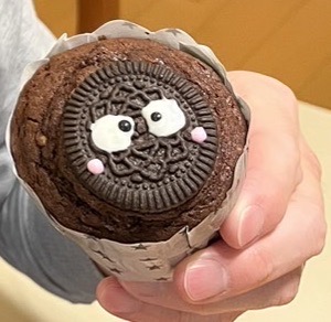 「オレオマフィン。大量生産するために材料を2倍にして作ろうとしたら、砂糖を2倍にするのを忘れていて、地味に美味しくないマフィンが完成……。 友達はみんなスイーツ大好きだから大丈夫なはず!と信じて配りに行きました。友達のリアクションは……ご想像にお任せします(笑)!」