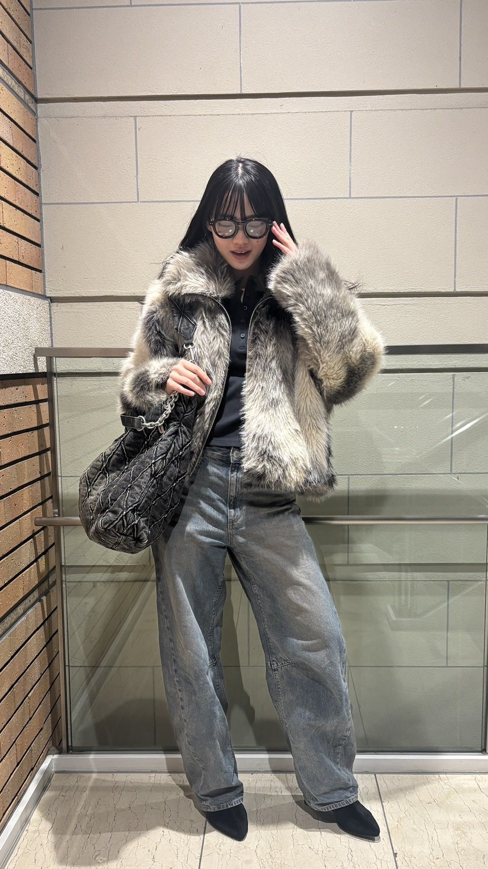 ファーコートは、デニムなどのシンプルなスタイルにさらっと羽織るのが今年っぽい。雰囲気を変えたい時は黒ぶちメガネで顔周りにアクセント♡ヒールのあるシューズを合わせれば、カジュアルになりすぎず大人っぽくまとまるよ。