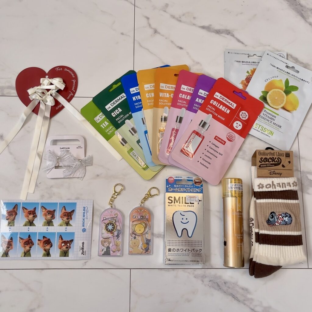 パックとかキーホルダーとか美容グッズもたーくさん買ったよ〜😻