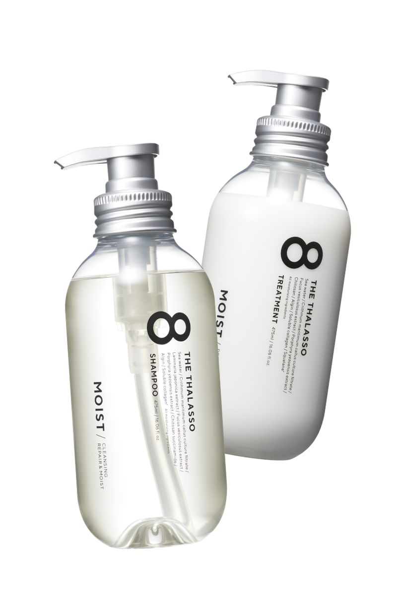 エイトザタラソ クレンジングリペア&モイスト美容液シャンプー、ディープリペア&アクアモイスト美容液トリートメント 475ml 各¥1540/ステラシード
