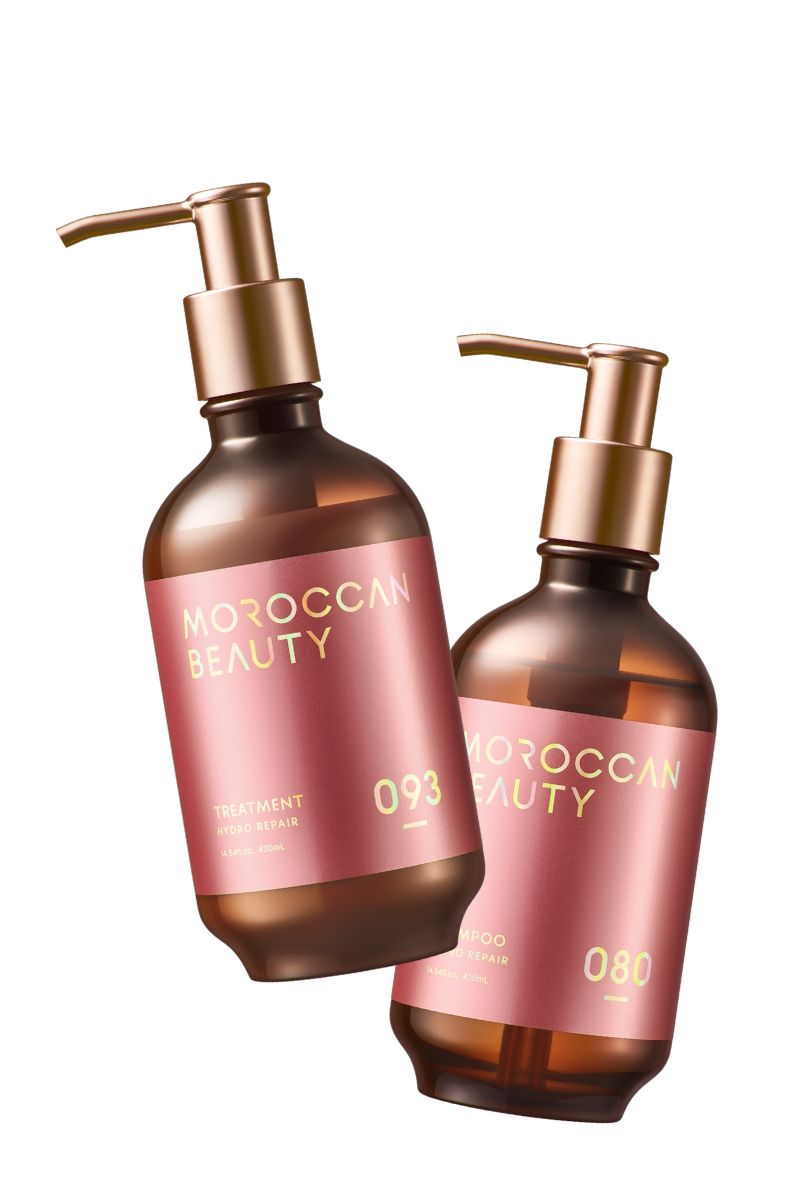 モロッカンビューティ ハイドロリペア シャンプー、ヘアトリートメント 430ml 各¥1595/ボトルワークス