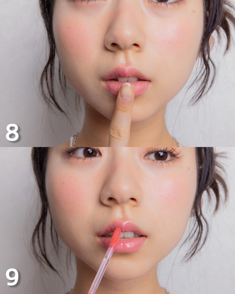 9.Fのグロスを唇の中心にON!んぱんぱして馴染ませてね。