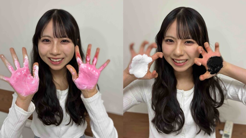 カラーメイクということで、流行の「混ぜたら何色なるかな」動画も撮影!近々アップ予定なのでお楽しみに❤︎絵の具に喜ぶユアを共有します♩