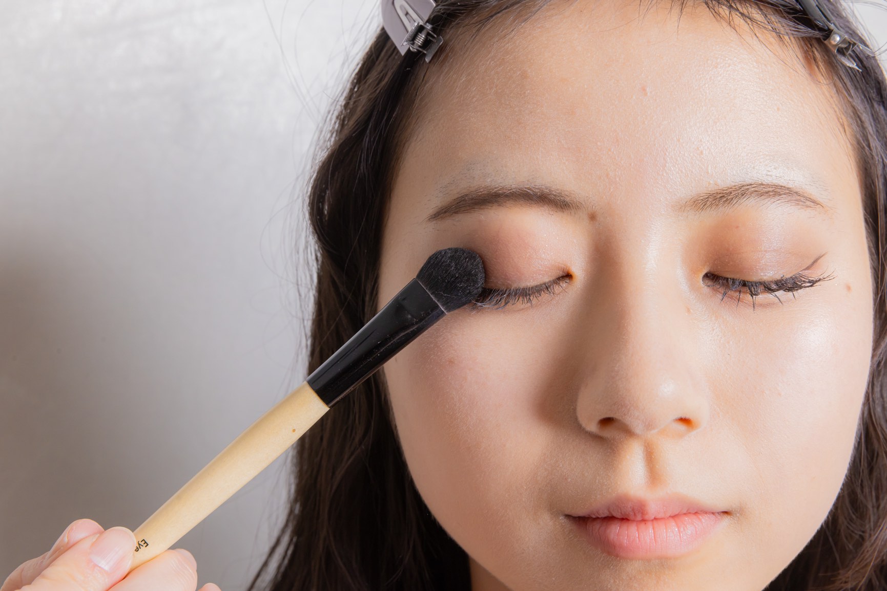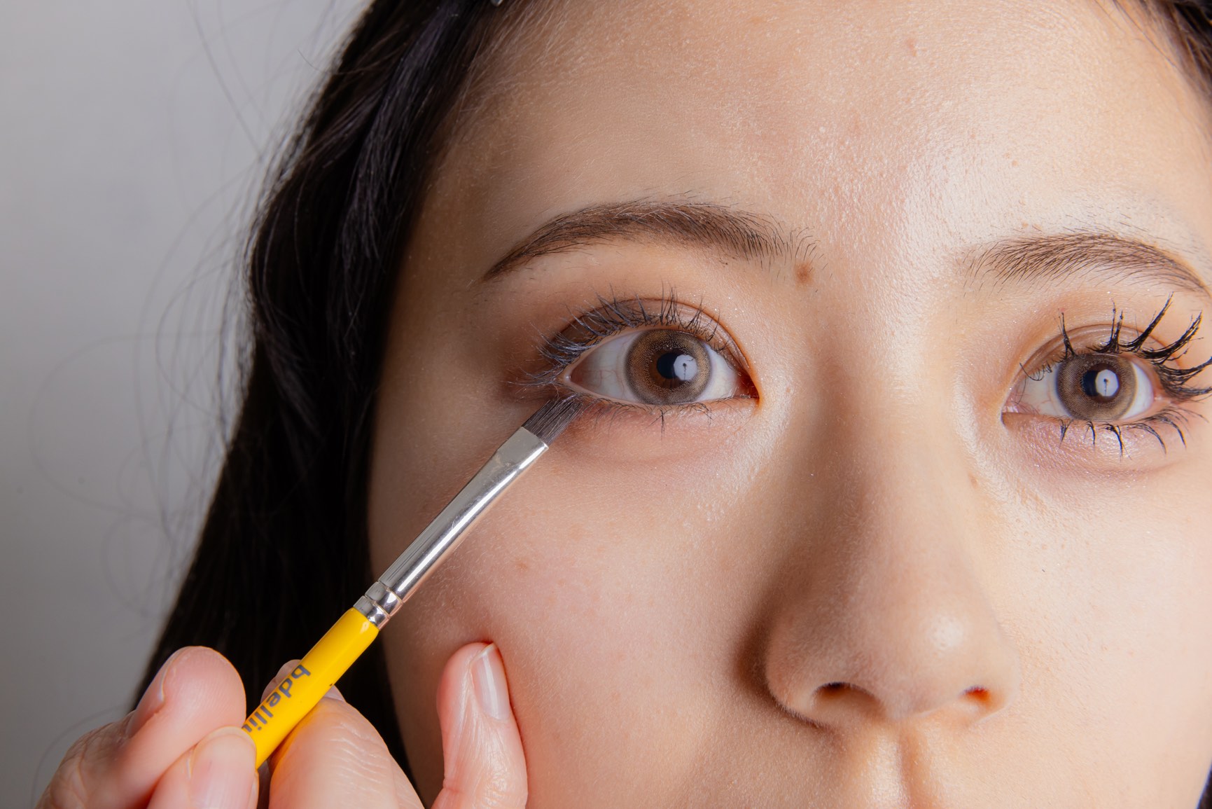 2.Cのシャドウを細筆でとり、下まぶたのキワを埋める。アイラインを埋める感覚で。目尻はスッとのばす。