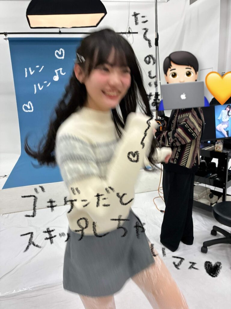 同学年が集まると恋バナをしたり仕事の話をしたり、とにかくおしゃべりが尽きない!!そんな楽しい空気感の撮影現場で、人一倍嬉しそうなのは生徒会長のアンナ。「マジでみんなでお泊まりしたい。そんでよみラン行って、語って思い出作って……って出来たらもう何も言うことはないんでマジ頼みます!!」とQteen企画を懇願していました(笑)。そんなアンナは楽しいとスキップが出ちゃうよ!