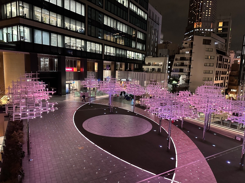 しかもこのにぎわいステージ周辺は夜は“桜色”にライトアップされていて、めちゃくちゃキレイなの♡