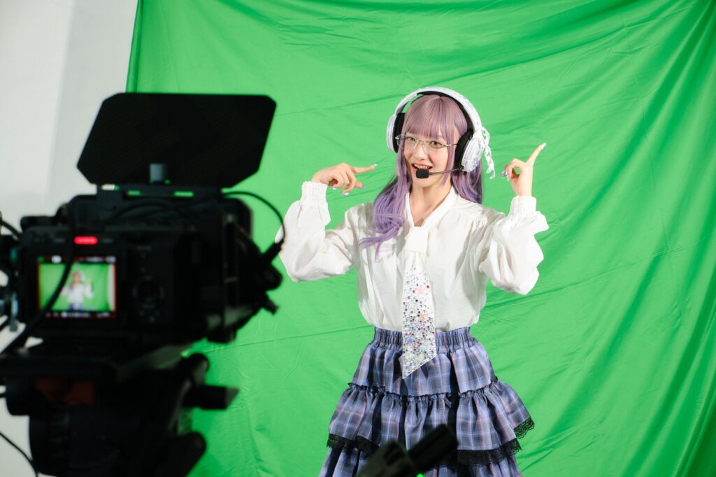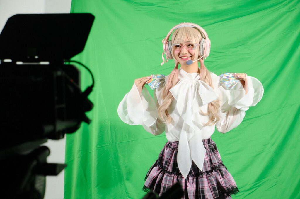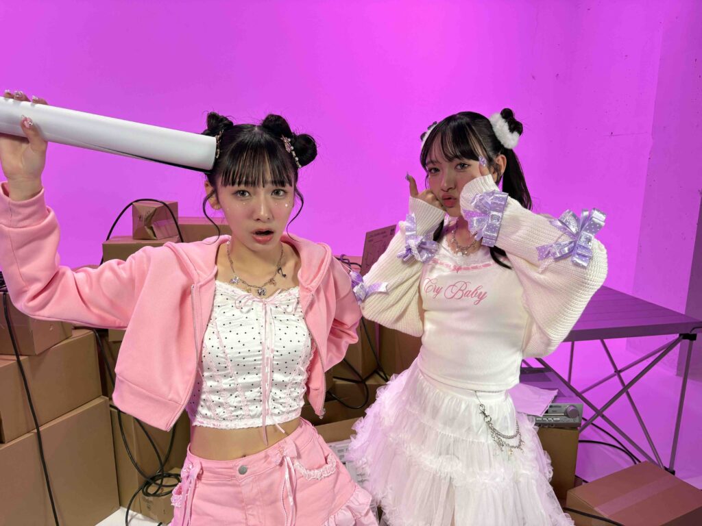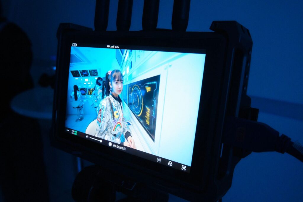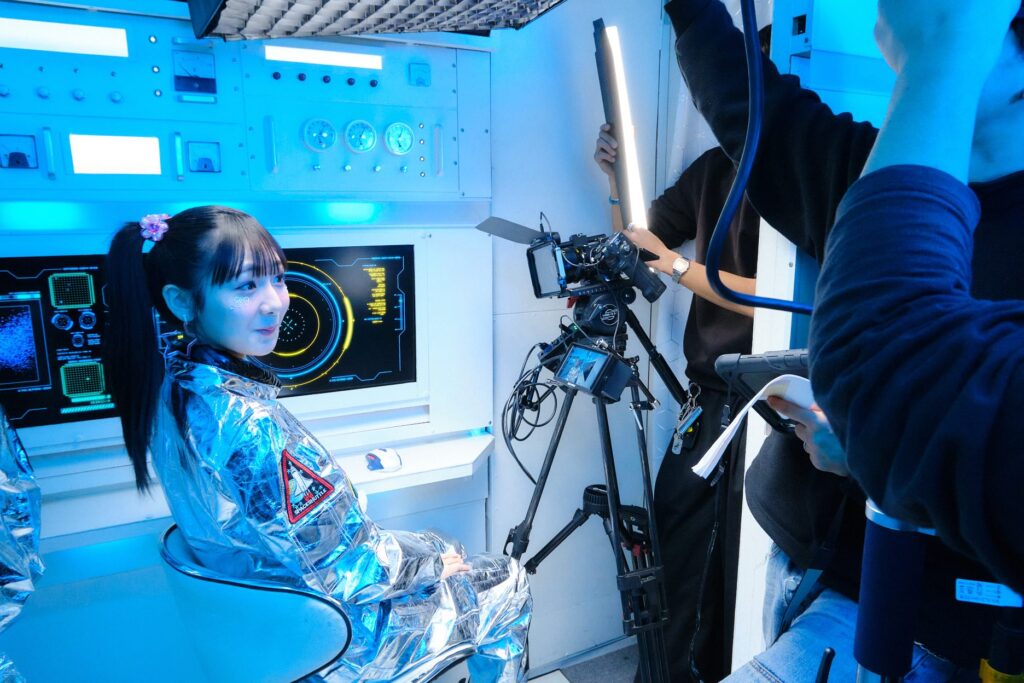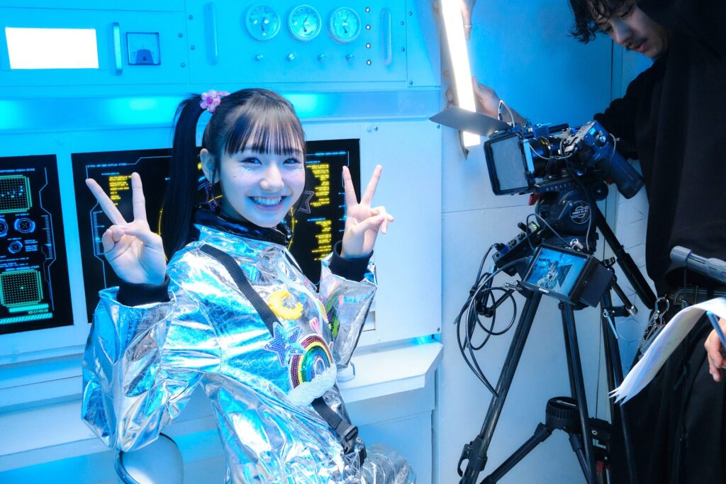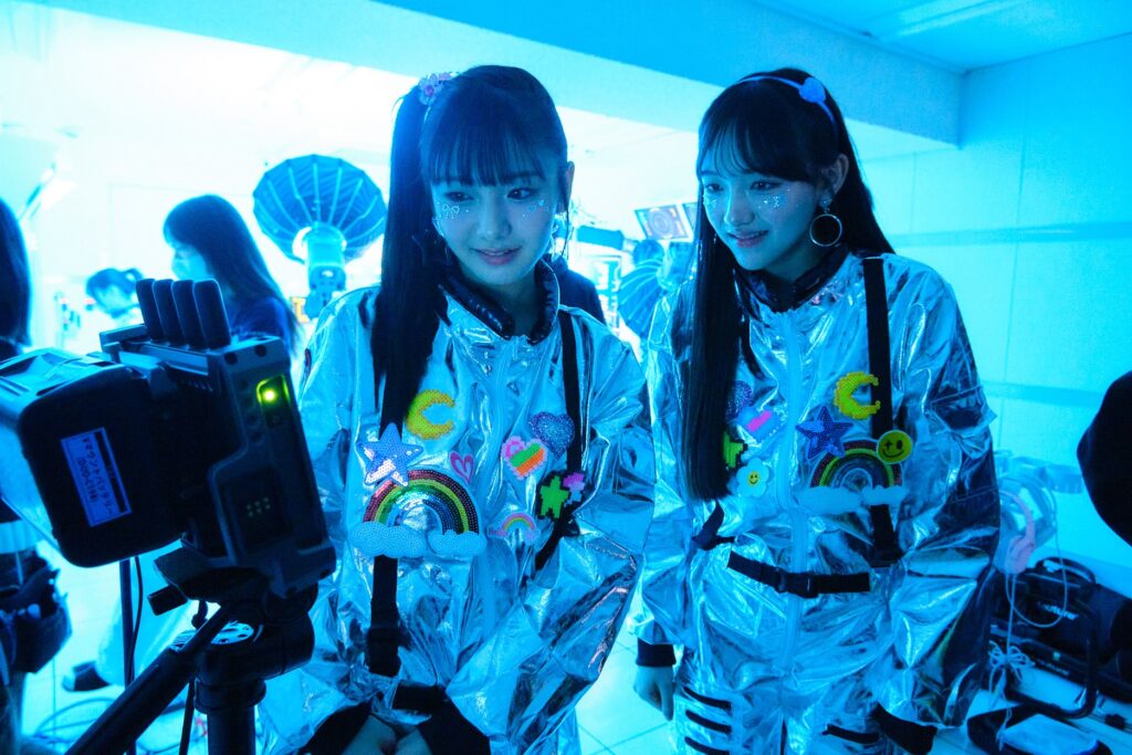 操縦室シーンを終えると、続いてはロボットシーンの撮影に。ロボットが登場するのではなく、“リコリリがロボットになる”ストーリー!ロボット化するべく、2人とも初めてのウィッグに挑戦したよ。さらにロボ感を演出するため普段はつけない派手なカラコンを装着したりと、あの手この手でリコリリロボが完成!瞳のアップシーンがあまりにも綺麗で、現場が沸く場面も!是非MV本編でチェックしてみてね。グリーンバック撮影では「投げキッスしてみて」と監督からのオーダーが。照れなど一切なく、ノリノリで投げキッス!いつものリコリリノリだったのか、ワンテイクで決まり、監督を驚かせていたよ(笑)!