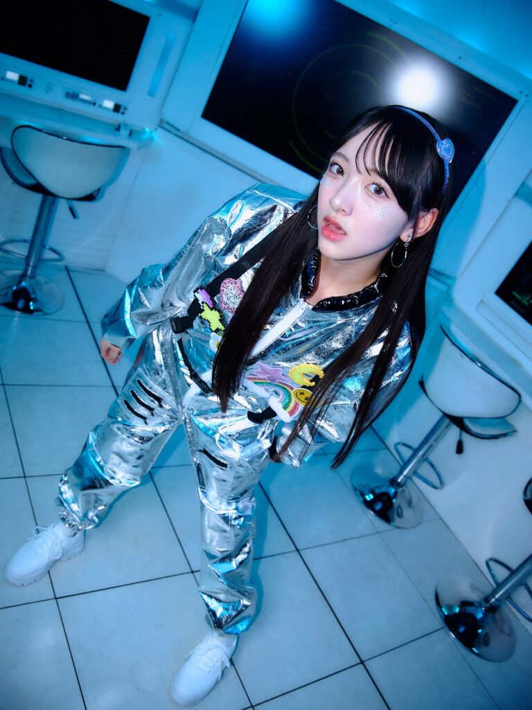 「3種類の衣装があって、リリの一番の推しはアー写で着ているふりふりの衣装です!全部かわいいけど、特にお気に入りなポイントはふりっふりのスカート!普段着ることのないアイドルらしいボリューミーなスカートを着られて嬉しかったです!そしてメイクのお気に入りポイントはまつ毛です!自分でするのとははるかに違うバッサバサのまつ毛にしていただいてかわいかったです!あと顔にシールが貼られているところもポイント♡」