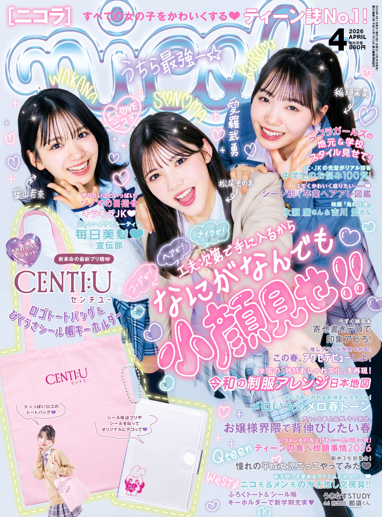 小顔見せテクニック、全国中高生の制服アレンジにふろくはトートバッグ&シール帳♡<ニコラ最新号注目記事10本‼︎>
