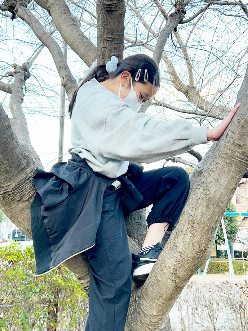 木登り!木に登って、上から落ち葉をぱらぱら〜ってやったり、落ち葉にだいぶして遊んでました!(中1・りん)