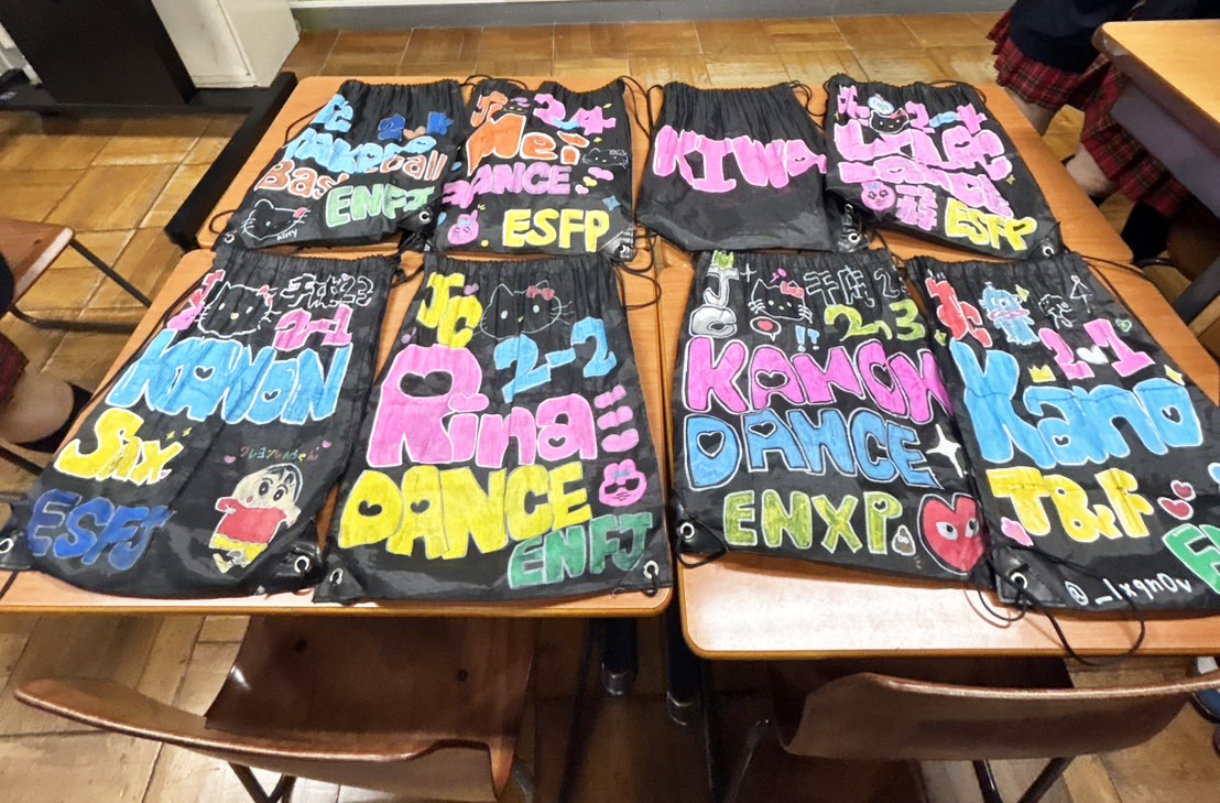 落書きデコすること!上履きデコ、体育祭はタオルデコ、文化祭はナップサックデコした!!8人でおソロ♡(中2・りーちゃん)