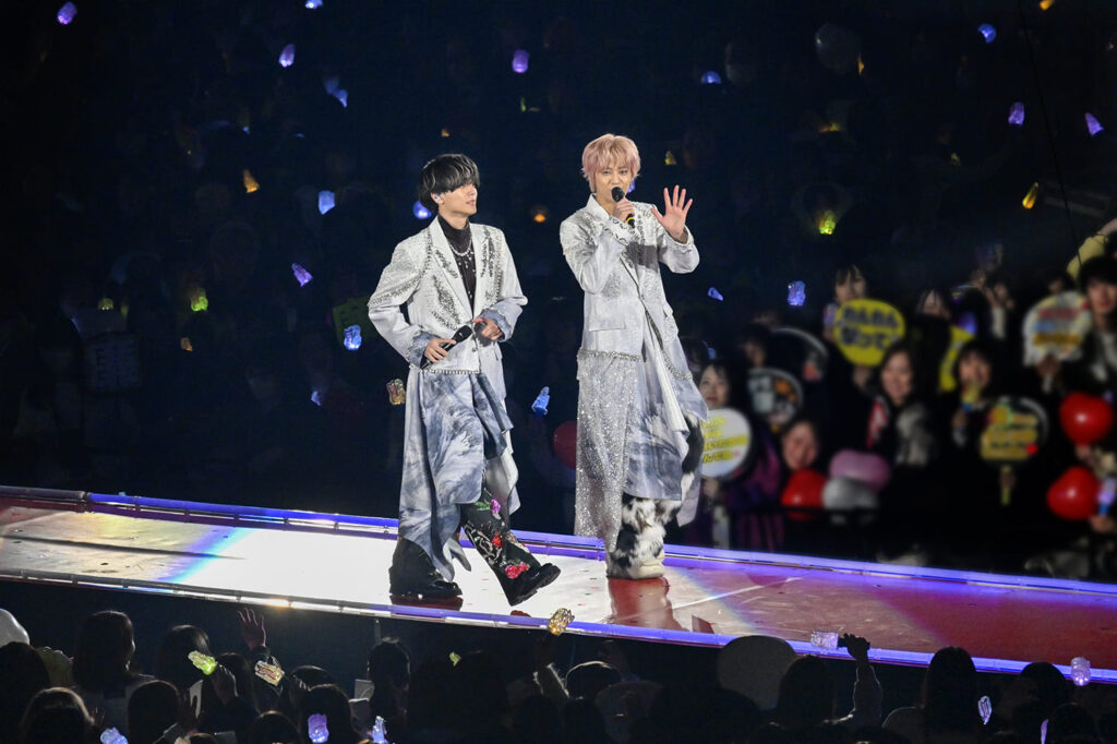 髙橋「冬ですしね! 廉も言ったとおり、前回の3大ドームをやらせていただいたときに2人でもドームをしょうあくできるんだっていう、不安から一気に自信に変わった経験があって。今回はもう本当に一切不安なく、どんどん自分たちから出てくるアイデアみたいなものを信じて、King & Princeらしいポップで少しかわいさとかのいろんなスパイスが効いたライブ作りができたかなと思っています。大阪、福岡と2都市やってきましたけど、どちらもすごいファンの皆様と熱狂することができたかなと思います。今回、東京では皆様を含め、お仕事でもご一緒させていただいている方とかも来ると思うので、みんなに大きくなったよっていうところも見ていただきたいなと思いますし、やっぱり東京ドームは自分たちも普段からよく見る場所で、思い入れはあるので一段とぶちかましていきたいなっていうふうに思います」