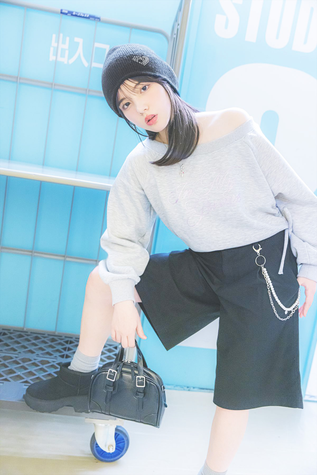 ソノマ★ハーフパンツ¥2990/ユニクロ スウェットトップス¥3960/clear ニットキャップ¥2090/ANAP チャームネックレス¥550/WEGO ウォレットチェーン¥1690/レピピアルマリオ バッグ¥3299/PHILLY ムートンブーツ(カバー付き)¥4480/VIVIAN COLLECTION