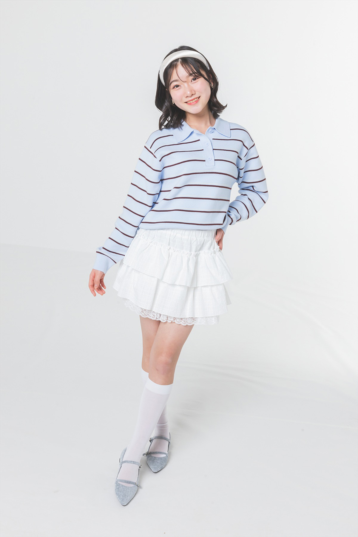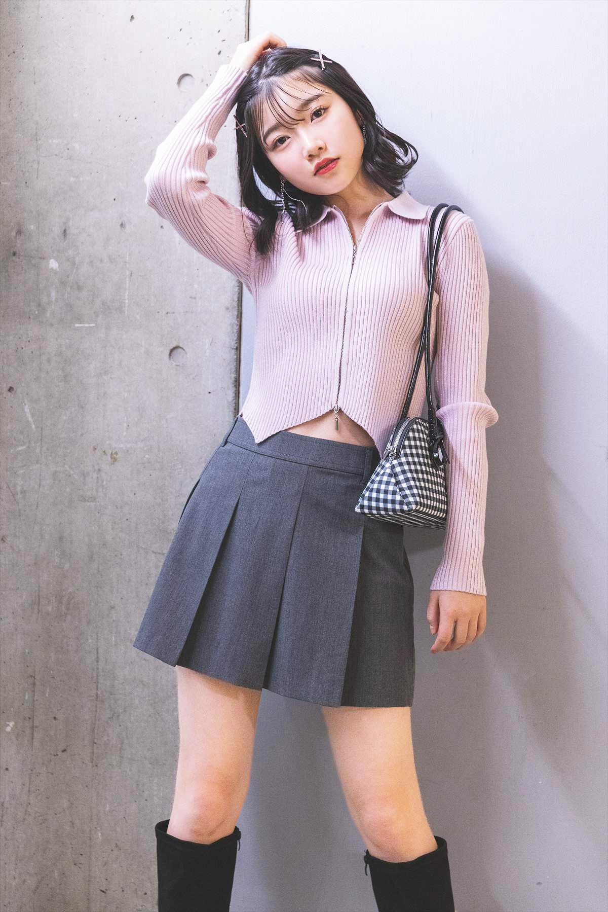 ⇒次ページ リリカが着こなす♡グレーの太めプリーツなら全テイスト着まわし可能