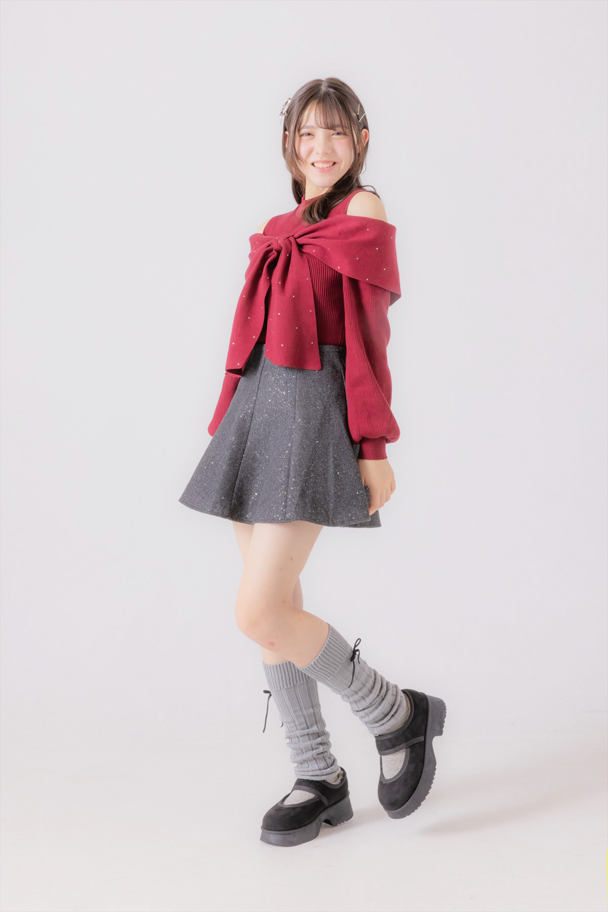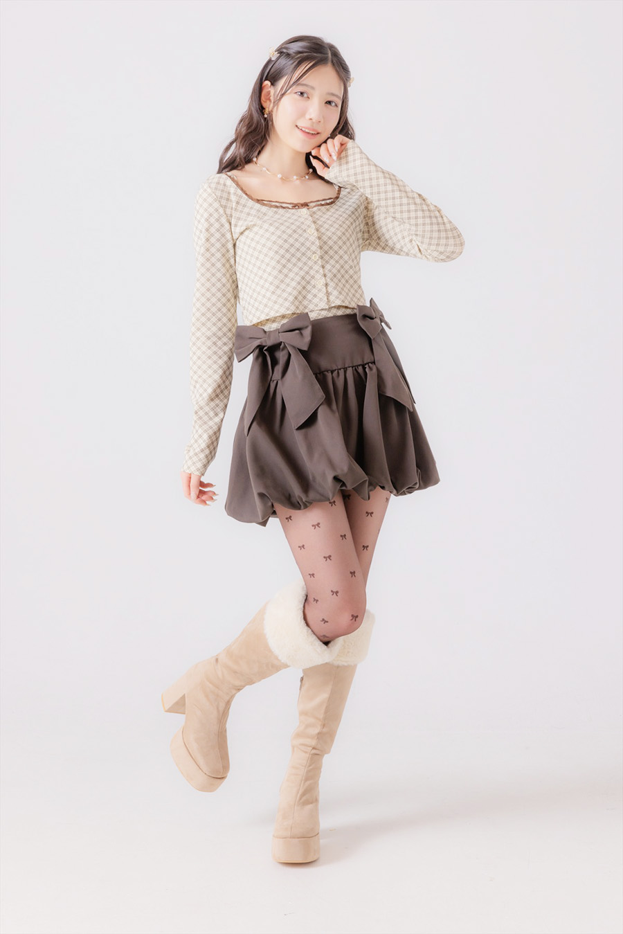 シャノン★リボンスウェット¥9900/merry jenny ミニスカート¥3630/ems excite マルチリボン¥330/ラティス イヤリング¥550/パリスキッズ 原宿本店 リボンチョーカー¥550/WEGO リボンブーツ¥9460/マジェスティックレゴン