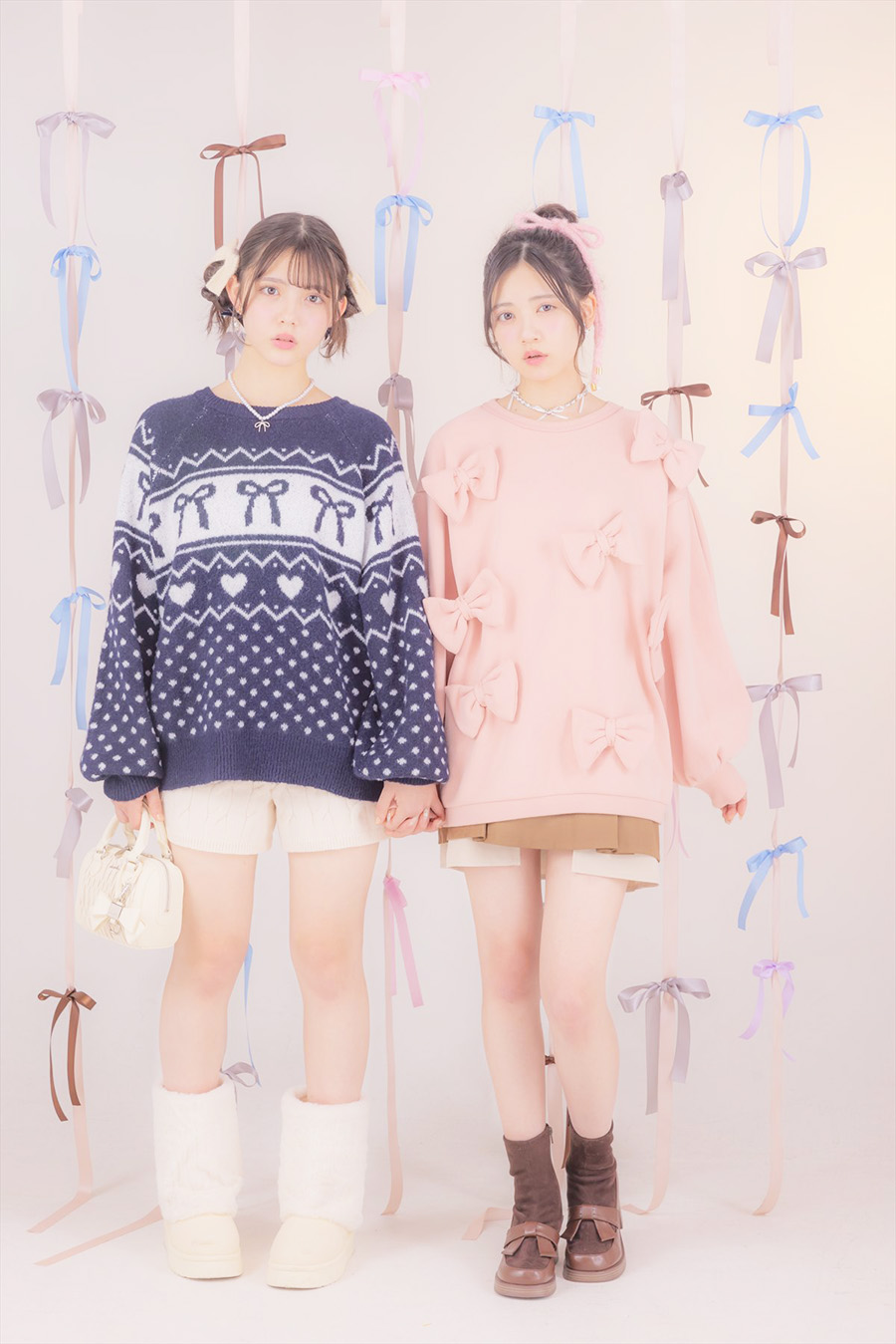ノルディック柄ニットもリボンが加わってメロさ最高級♡
