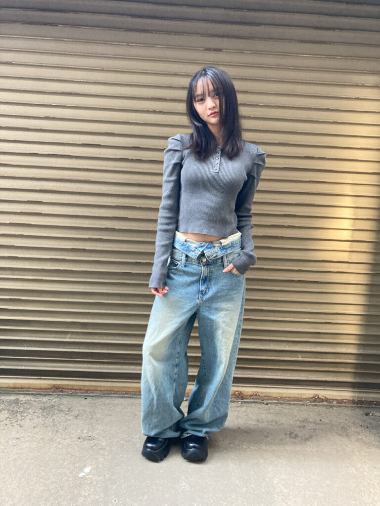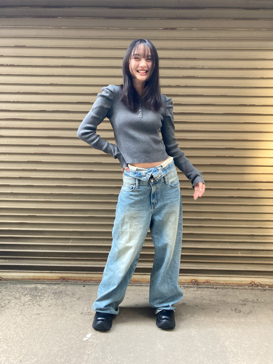 「全部SLY!初めから狙って店舗に行ったわけじゃないんだけど、ショートブーツほしいな〜と思ってぶらぶらしてたら歩きやすいこの子を発見♡(半額セールでゲット!)そうしたらこのブーツを履いている店員さんが着ていたセットアップもかわいいなって気になって。きれいめガーリーな服ってあんまり持ってないんだけど、このトップスは肩のディテールがかわいいからつられ買い!デニムとあわせるとカジュアルになる着回し力もお気に入り♡そしてそしてセットアップを試着してたらママがこのデニムをめずらしくない?って持ってきてくれて。ウエスト折り返しのローウエストデザインがかわいいし、だぼっと着るのがおしゃれだなと思って一番大きいサイズにした!めっちゃお気に入りです♡お年玉に感謝〜!」