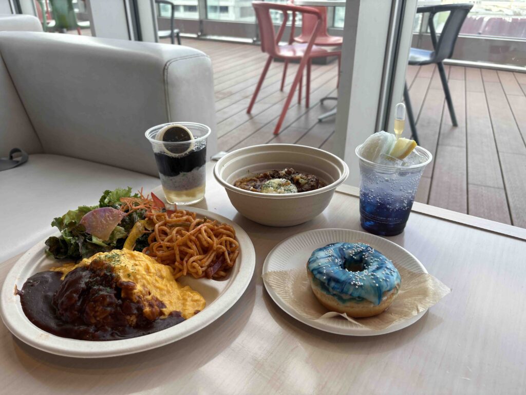 お腹が空いたら、7階の展望ラウンジにある『CAFETERIA BLUE』でランチタイム!ボリューム満点のフードメニューをお台場や東京タワーが見える展望ラウンジで食べることができるよ☆常設展示コラボメニューは数量限定だから、忘れずにチェックしてね♡