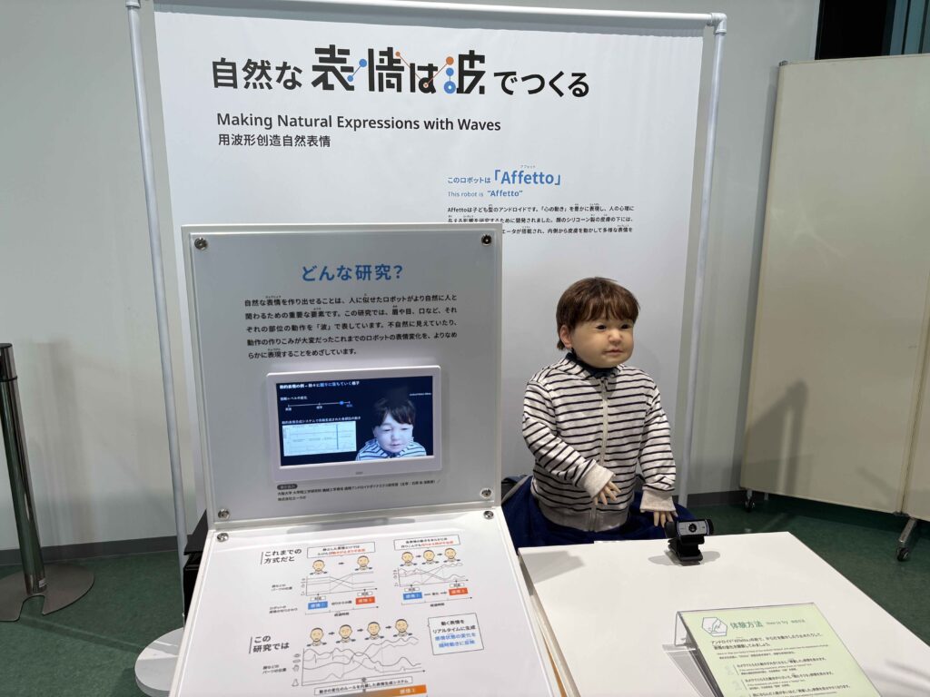 「心の動き」を豊かに表現し、これまでのロボットよりも自然な表情を作り出す子ども型のアンドロイド。見た目はまるで本物の人のよう!眉や目、口、肩などの動作を「波」で表すことにより、なめらかな表情で感情を伝えてくれるよ!