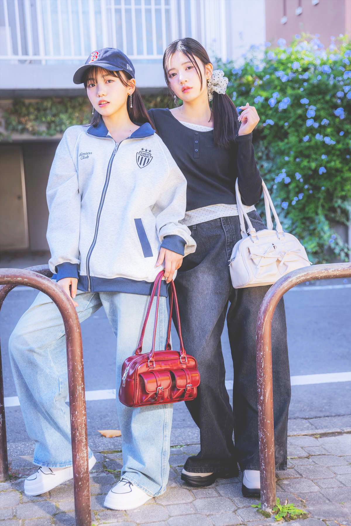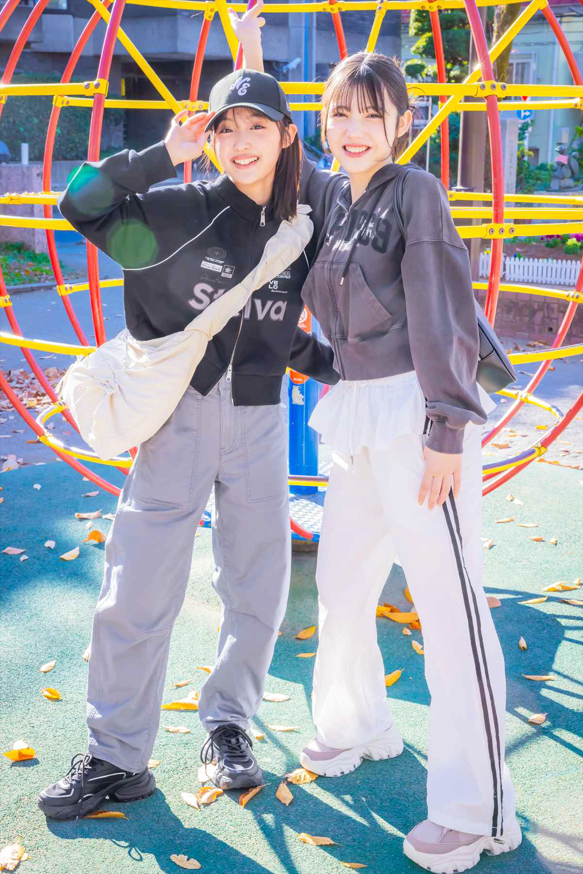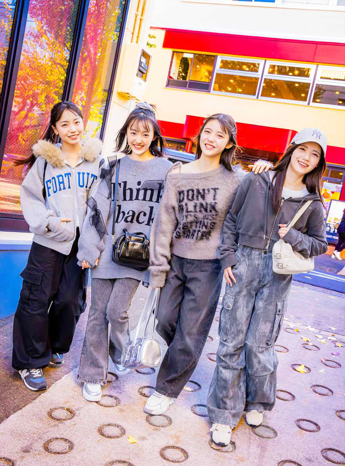 ラフなのにイケてる★空港ファッション的ぎゃるモノトーン【写真右端】