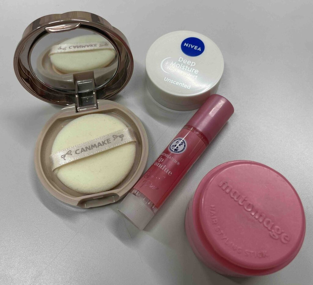 「撮影日は、ヘアメイクさんにかわいいヘアメイクをしてもらえるので、身だしなみアイテムは少なめ(笑)!ニベアのディープモイスチャーは超リピしてる♡」