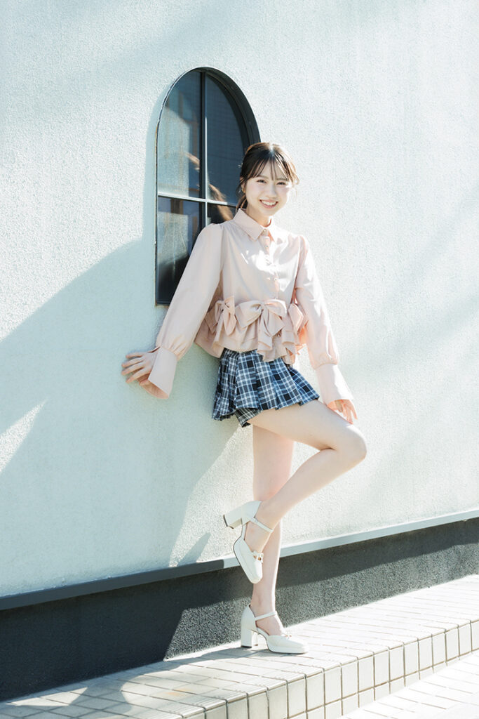 ユア☆リボンシャツ¥6600/マジェスティックレゴン スカパン¥2860/高速ターミナル 原宿店 イヤリング¥1870/OSEWAYA(お世話や) パンプス¥9900/オリエンタルトラフィック(ダブルエー)