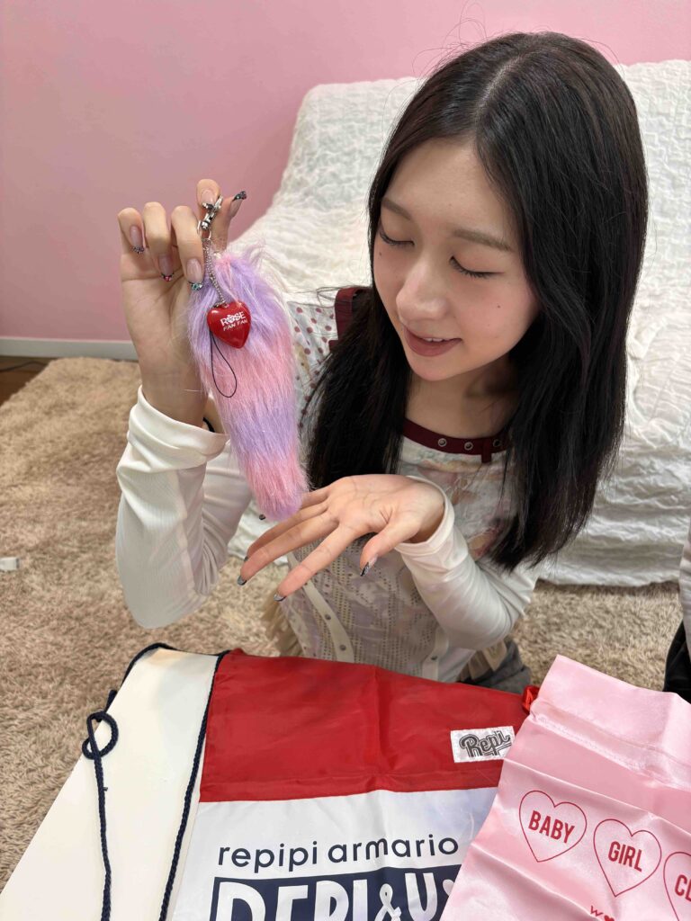 ザ・平成なカラーのしっぽチャームに一目惚れした、エディターズ・むん!大きめなサイズ感と、一緒についているハートのチャームもお気に入りとのこと♡
