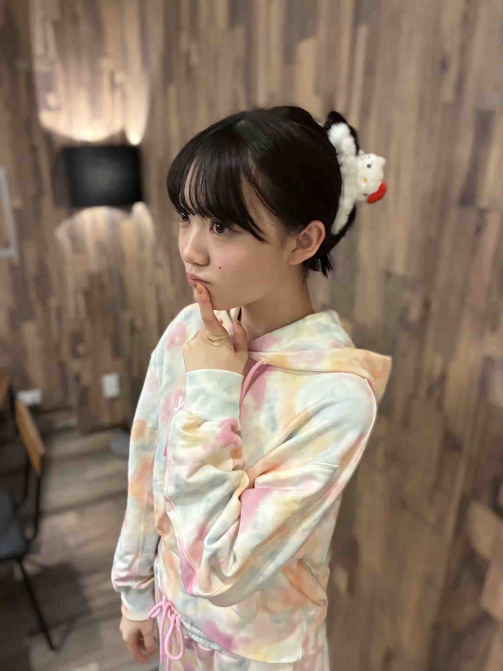 「カジュアルなパーカとスウェットなんだけど、色がパステルで柄はよーく見ると花柄♡この感じがめちゃくちゃかわいい!着心地もいいし、ラフだけど気を抜きすぎていなくておしゃれ感もきちんとキープ出来る!子供っぽくないさわやかな甘さがポイントです。頭にはサンリオでゲットしたキティちゃんのバンスをつけて、ちゃめっけもアピールしちゃってまーす♡」
