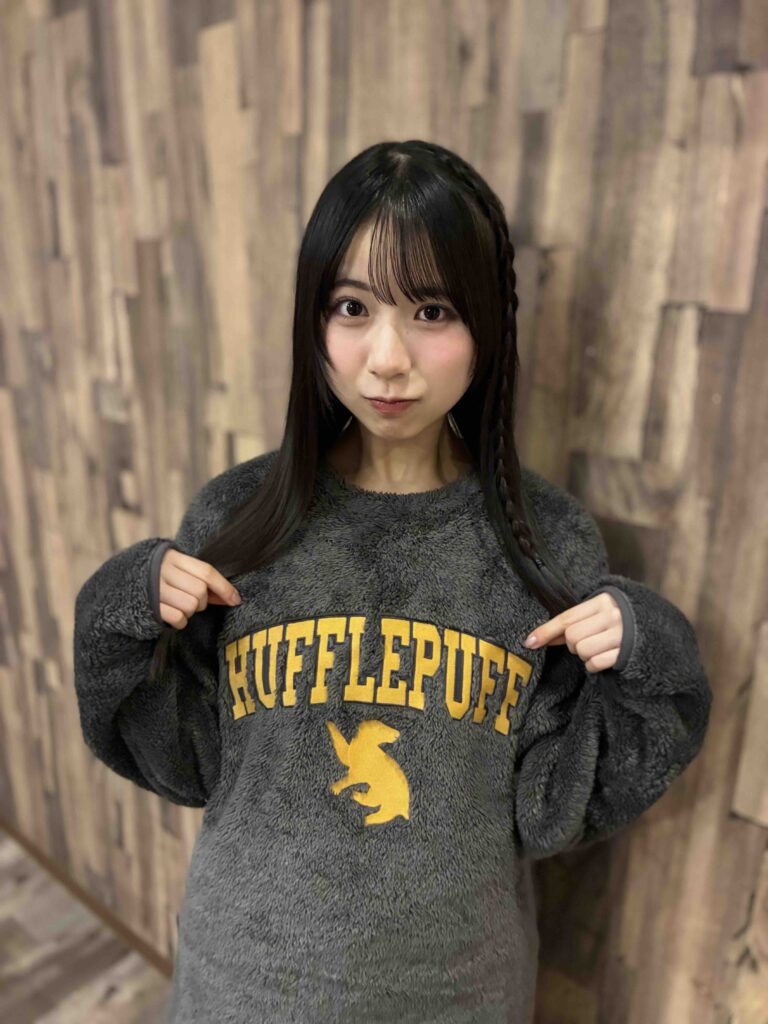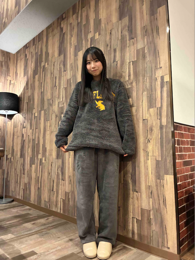 「お母さんがGUで買ってきてくれたパジャマは、ハリポタコラボ!『勤勉、献身、忠誠、そして公平さを尊ぶハッフルパフが唯愛っぽい』と言ってくれてました(笑)。濃いめのグレー×イエローの配色もおしゃれだし、あったかくて触り心地もよくて……着ているだけでいい夢が見られそうでお気に入り♡」