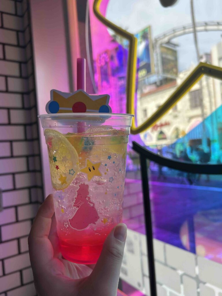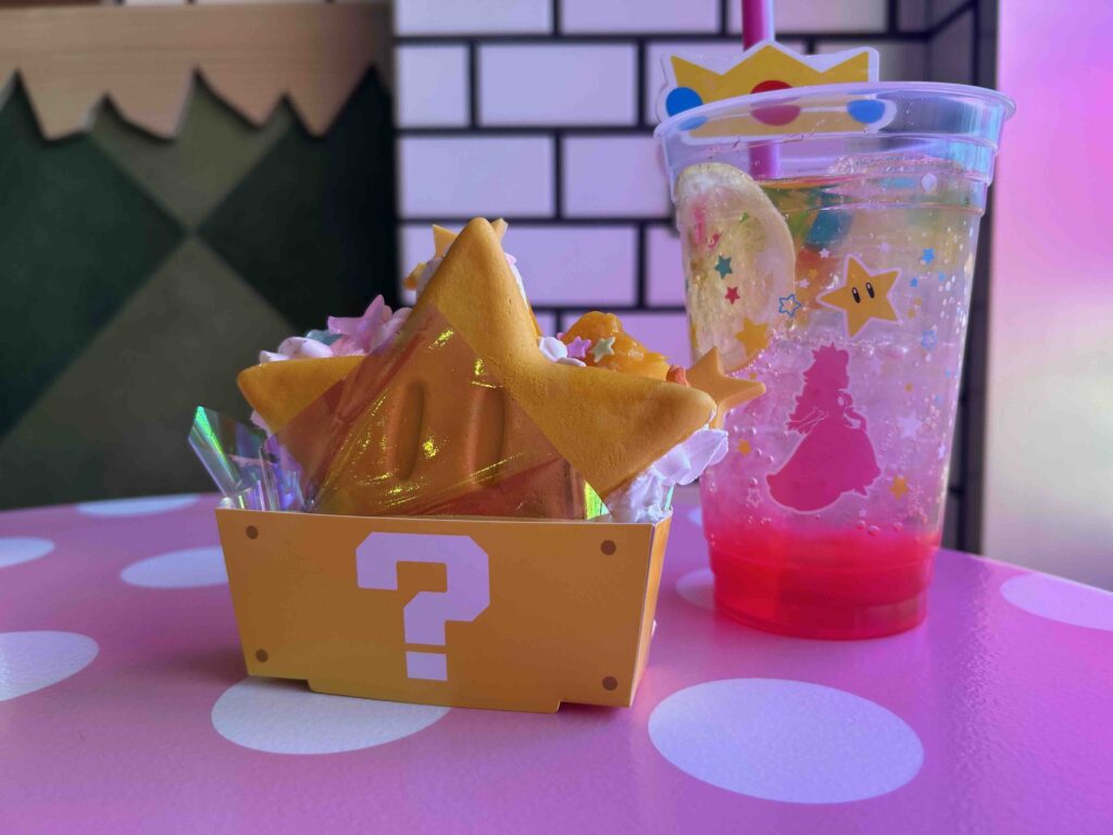 スーパー・ニンテンドー・ワールドの外でも5周年をお祝い中!ハリウッドエリアにある『マリオ・カフェ&ストア』では「スーパースター」をテーマにしたパンケーキや、通常よりもパワーアップしたソーダを楽しむことができるよ!
