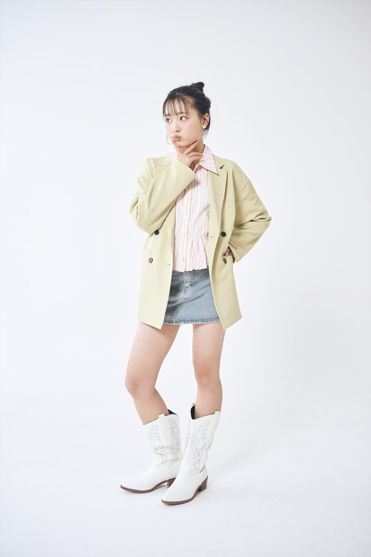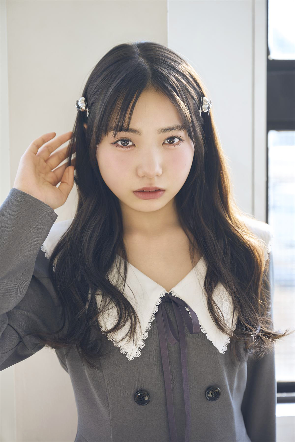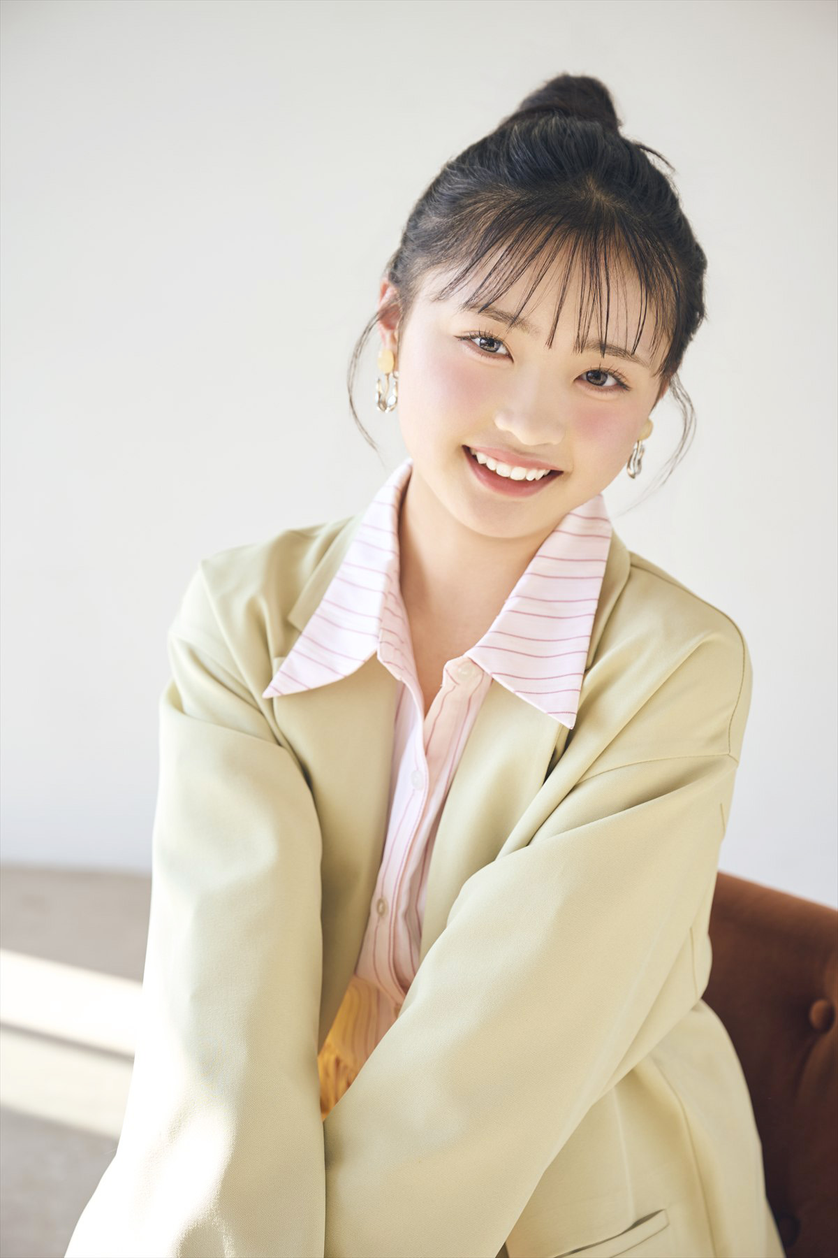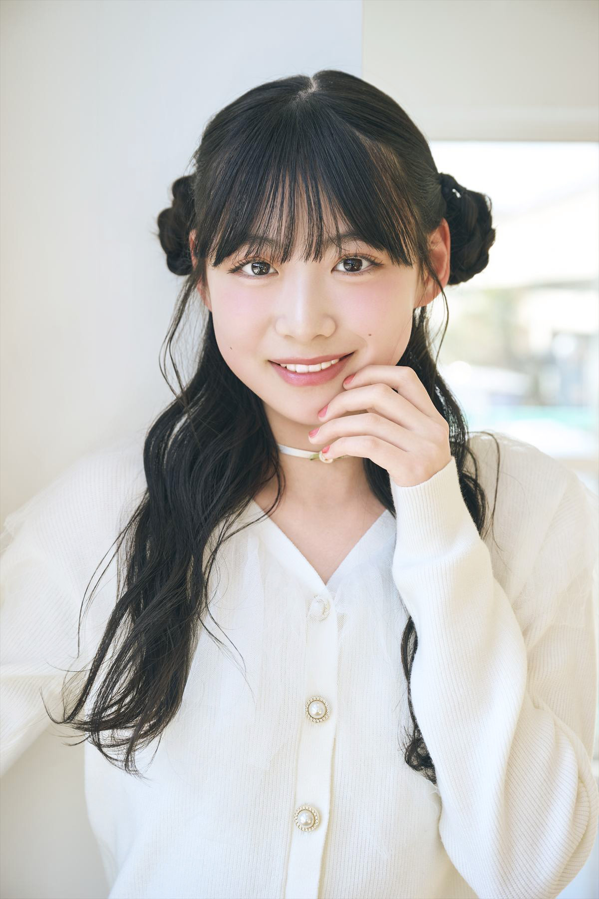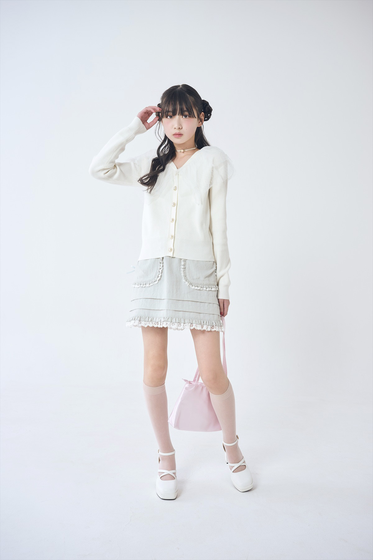 前髪が大人っぽい印象な分、丸顔さんのキュートさを生かした甘めコーデとの相性も◎
