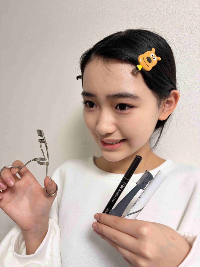 マスカラはビューラーでまつ毛をあげてから透明のキープマスカラをぬってる!