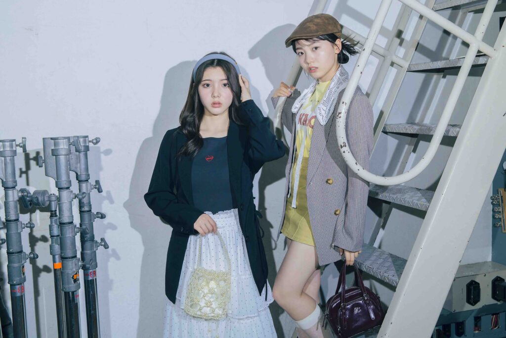 白を基調としたワンツーに、グレーのジャケットを羽織ってお上品見せ。ポケットの大きなリボンでアクセントも抜群。足元もハイソとミュールでプラスの甘さを♡