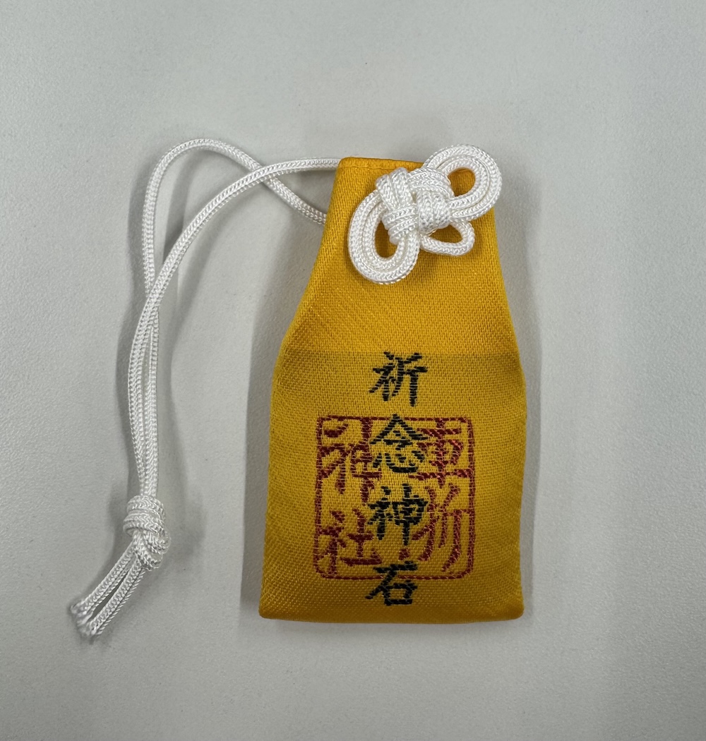 「京都の車折神社の石が入ったお守り。願いが叶ったら、その石と一緒に神社へ返納するよ。夢が叶いますように☆」