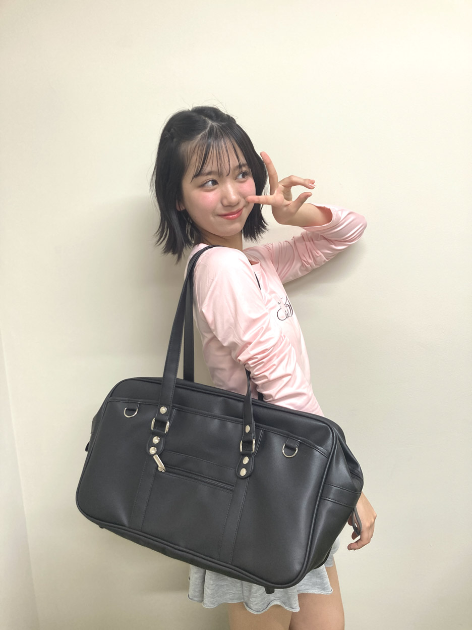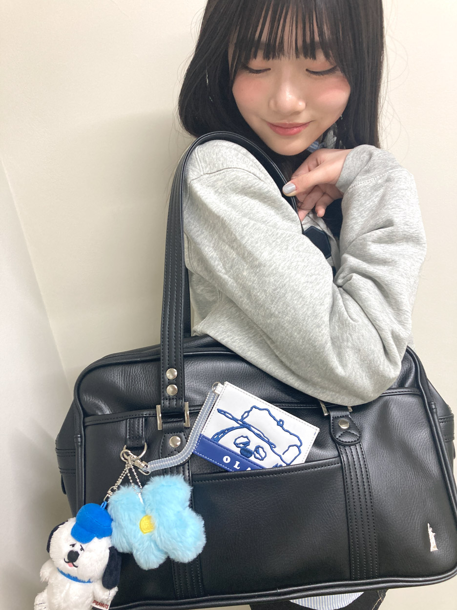 「黒の合皮のスクバ買ってってお願いして、おまかせで買ってきてもらった!「わかはポケット多い方がいいでしょ」って中にも外にもポケットたくさんのやつ(笑)。高校生は大人っぽくいこうかなと思って、マリクワのポーチとかを持ち歩きたいから色を揃えたくて黒にしました♡」