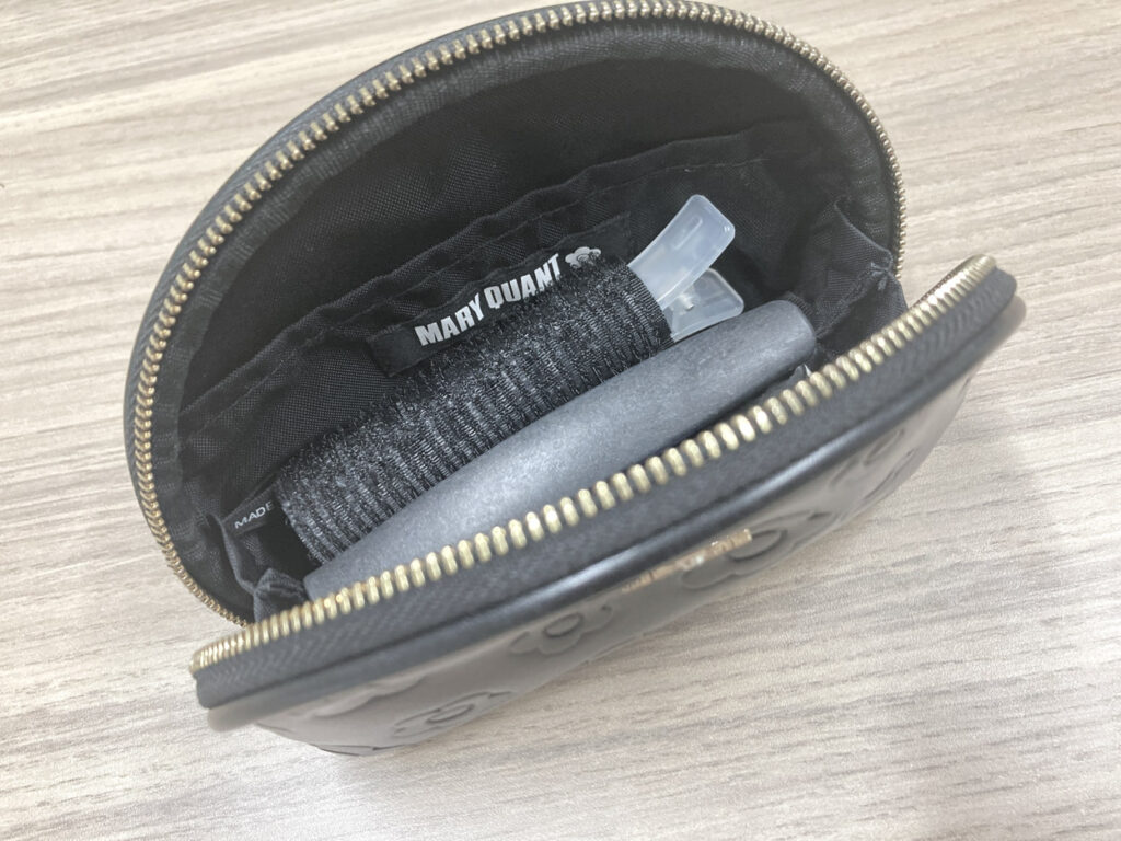 「マリクワが好きだから今までも結構集めてたんだけど、JKの筆箱どうする?と思った時に、普通のだと被りそうだなと思ってて。だからちょっと大人っぽくいきたいし、どうせ被るならモテを意識したくて(笑)、落ち着いた黒にした!デイジーモチーフが散りばめられているのもかわいくてお気に入り。高校入ったらモテたいなー(笑)!ポーチは今までキャラものを使ってたんだけど、筆箱と揃えてマリクワに。ヘアケアとか持ち歩きコスメとかいっぱい使うようになるからマチがある大きめのものにしたよ。中にもポケットあるから収納力高くて◎」