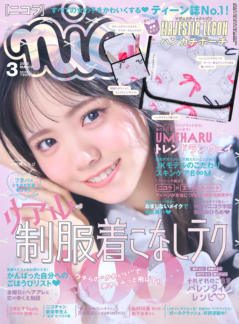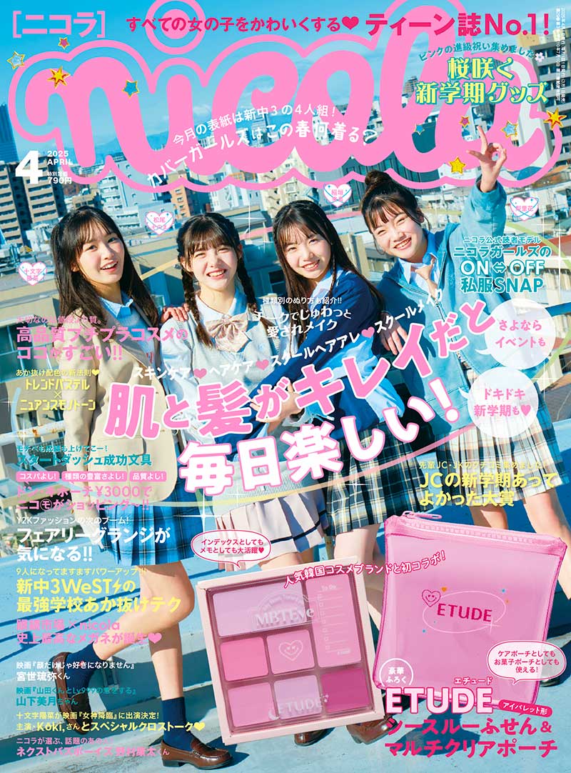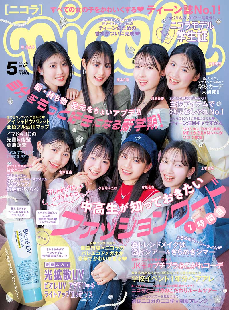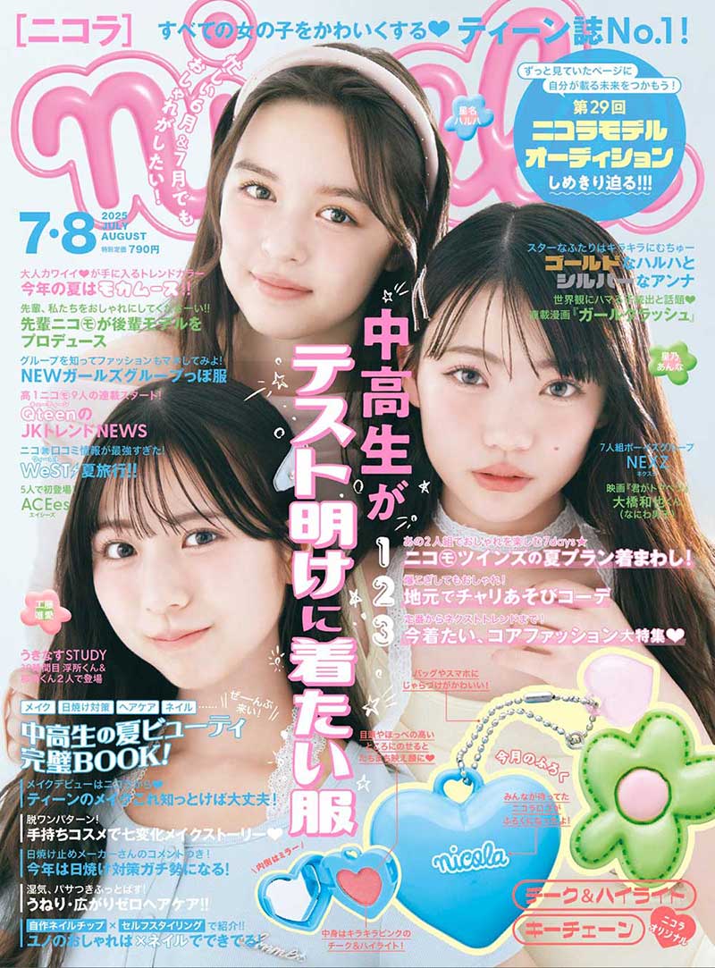 Back Number2025 2024 1997 2025年1・2月号 Cover Model 星名ハルハ 松田美優 有坂心花 星乃あんな 松尾そのま 小松崎ふたば 伊藤沙音 2025年3月号 Cover Model 小松崎ふたば 2025年4月号 Cover Model 十文字陽菜 松尾そのま 稲垣来泉 梨里花 2025年5月号 Cover Model 林美央子 榎本月海 川原美杏 吉岡優奈 吉本麗南 小松崎ふたば 有坂心花 上妻美咲 2025年6月号 Cover Model 有坂心花 2025年7・8月号 Cover Model 工藤唯愛 星名ハルハ 星乃あんな 2025年9月号 Cover Model 松尾そのま 稲垣来泉 2025年10月号 Cover Model 泉有乃 葉山若奈 星乃あんな 伊藤沙音 2025年11月号 Cover Model 星乃あんな 松尾そのま Rankingランキング ライフスタイル 2025.12.08 JCがもらってうれしいクリスマスプレゼントランキング2025!【ガールズラボ】 ガールズラボ 連載 2025.12.12 秋も冬も楽しみがいっぱい💞かんかんの秋冬のお出かけ~🍁☃️ 【ニコラガールズ/葵かんな】 ニコラガールズBLOG 葵かんな ライフスタイル 2025.12.12 【中学生の流行 なんでもランキング2025♡】今年の流行語・恋人になってほしい人1位は? ガールズラボ ファッション 2025.12.11 今年の冬は“ファー”が着たい!!<中高生モデルのファーコーデ4選>【葵かんな、泉有乃、大月美空、大森ひかる】 大月美空 大森ひかる 泉有乃 私服 葵かんな ファッション 2025.12.11 流行りのレザージャケット、どう着こなす?<すぐに真似できる、最旬甘辛MIXコーデ5選> 佐々木花奈 星乃あんな 星名ハルハ 松尾そのま 松田美優 私服 2025.12.12 レピピアルマリオ×ニコラコラボが今年も登場!!<冬コーデを一気にあか抜けさせる主役級アイテム> 十文字陽菜 星乃あんな 松尾そのま 松田美優 ファッション 2025.12.01 ママ友を「あっ!」と言わせる!!敏腕スタイリスト発シーン別ママファッション5選【親ニコラ】 親ニコラ 連載 2025.12.09 寒いよォー凍えるー🫸🫨🫷そんな私のwinterコーデ꒰(๑´•.̫ •`๑)꒱💛【ニコラガールズ/神保來美】 ニコラガールズBLOG 神保來美 連載 2025.12.11 ほのかのおすすめの冬紹介⛄️❤️❤️冬といえばやっぱり、、⁉️【ニコラガールズ/花岡穂果】 ニコラガールズBLOG 花岡穂果 ライフスタイル 2025.12.13 イルミ、クリパ、JKケーキ…2025年トレンドはこれ!みんなのクリスマスの過ごし方を写真で教えてもらったよ! Close