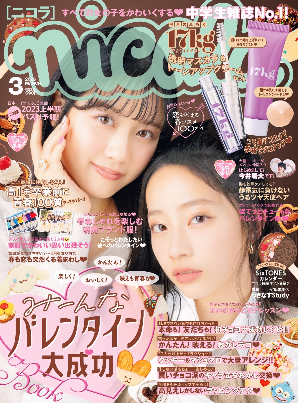 Back Number2023 2022 2024 2023年1月号 Cover Model 髙橋快空 2023年2月号 Cover Model 近藤藍月 髙橋快空 近藤結良 2023年3月号 Cover Model 河村果歩 池端杏慈 2023年4月号 Cover Model 太田雫 組橋星奈 田中南 関谷瑠紀 凛美 高比良由菜 宮本和奏 2023年5月号 Cover Model 髙橋快空 有坂心花 池端杏慈 2023年6月号 Cover Model 髙橋快空 足川結珠 2023年7月号 Cover Model 伊藤沙音 小松崎ふたば 佐藤菜月海 2023年8月号 Cover Model 髙橋快空 2023年9月号 Cover Model 髙橋快空 近藤藍月 2023年10月号 Cover Model 足川結珠 2023年11月号 Cover Model 小松崎ふたば 吉本麗南 有坂心花 林美央子 2023年12月号 Cover Model 髙橋快空 池端杏慈 Rankingランキング ファッション 2025.11.30 いつものコーデにメガネをプラス!小物で差をつけるおしゃれ術〈中学生モデルのリアル私服5選〉 崎浜梨瑚 松尾そのま 梨里花 相沢伊吹 私服 稲垣来泉 ファッション 2025.12.03 冬服マンネリ問題は”コアファッション”で即解決☆ 十文字陽菜 星乃あんな 星名ハルハ 松尾そのま 梨里花 相沢伊吹 葉山若奈 連載 2025.12.02 FJCりりあの二学期໒꒱· ゚ これからもよろしくお願いします☺️💞【ニコラガールズ/小林凛々愛】 ニコラガールズBLOG 小林凛々愛 連載 2025.12.03 “NEXZ” HYUI&YUKIのティーンズポップ!<特別編:2人の細かすぎるデータ> HYUIとYUKIのティーンズポップ NEXZ 連載 2025.12.03 えみちゃんは目を●●しちゃった!?🥺/二学期のサイコーの思い出🩷【ニコラガールズ/宮﨑えみり】 ニコラガールズBLOG 宮﨑えみり スクール 2025.12.04 コミュ力アップ、自信がついた!「トビタテ!留学JAPAN」先輩たちのリアル体験談! 連載 2025.12.04 ニコラモデルの目力の作り方徹底解説!〈セルフメイク〉【松田の姫ライフ vol.47】 松田の姫ライフ 松田美優 ライフスタイル 2025.12.01 【ニコラ最新号試し読み】2025年トレンドランキング発表&ふろくはMAJESTIC LEGONコラボコスメ♡冬トレンドが大集合! 十文字陽菜 星乃あんな 星名ハルハ 松尾そのま 梨里花 相沢伊吹 稲垣来泉 葉山若奈 試し読み 連載 2025.12.04 ひとやすみのお出かけblog🥰【ニコラガールズ/髙野ここり】 ニコラガールズBLOG 髙野ここり ファッション 2025.11.28 中高生モデルのキャップコーデ7選<被るだけでこなれ感ゲット!!> 中瀬梨里 星乃あんな 松田美優 泉有乃 私服 葵かんな 青山姫乃 Close