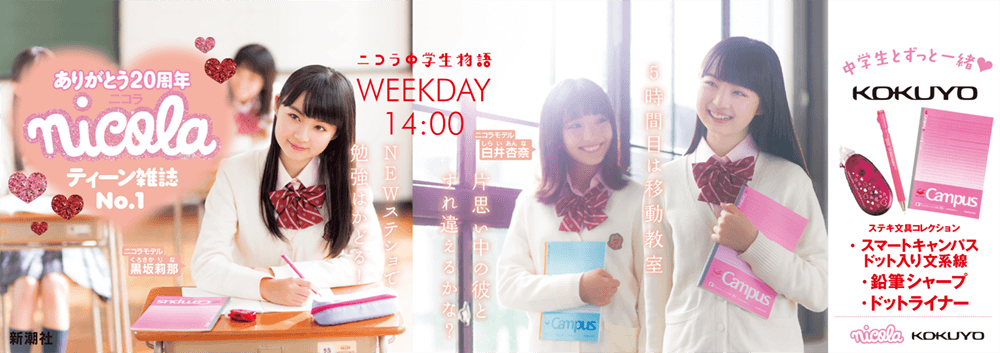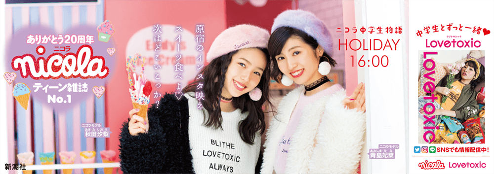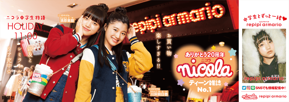 冬休みニコラ20周年企画がスタート! 20周年を記念したポスターが山手線と原宿駅に貼られるよ。一緒にポスターを作ったメーカー&ブランドがお祝いに豪華プレゼントもくれちゃったよ?