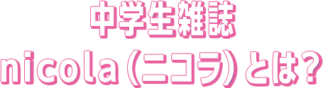 ニコラモデル(通称ニコ㋲)はすべて本誌専属で、現在中1~高1まで22名が在籍。読者と同世代のニコ㋲たちは、全国の女子中学生から共感される、憧れの存在。創刊以来毎年開催している「ニコラモデルオーディション」で発掘された子が大多数です。また、南は九州まで全国各地に在住し、撮影のたびに上京しているのもニコ㋲の特徴。YouTube公式チャンネル「ニコラTV」やTikTokなどのSNSも大好評で、本誌以外にも活躍の場がたくさんあります!