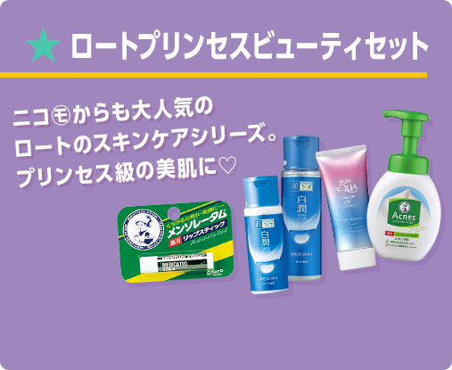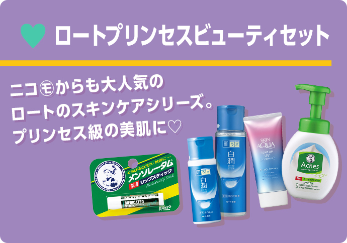 (右から)メンソレータムアクネス 薬用ふわふわな泡洗顔[医薬部外品]、スキンアクア トーンアップUVエッセンス、肌ラボ 白潤薬用美白化粧水・乳液[医薬部外品]、メンソレータム薬用リップスティック[医薬部外品]/すべてロート製薬