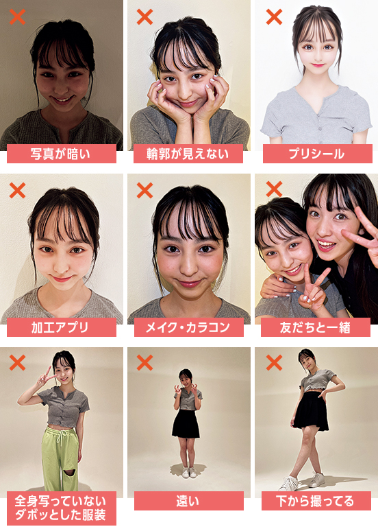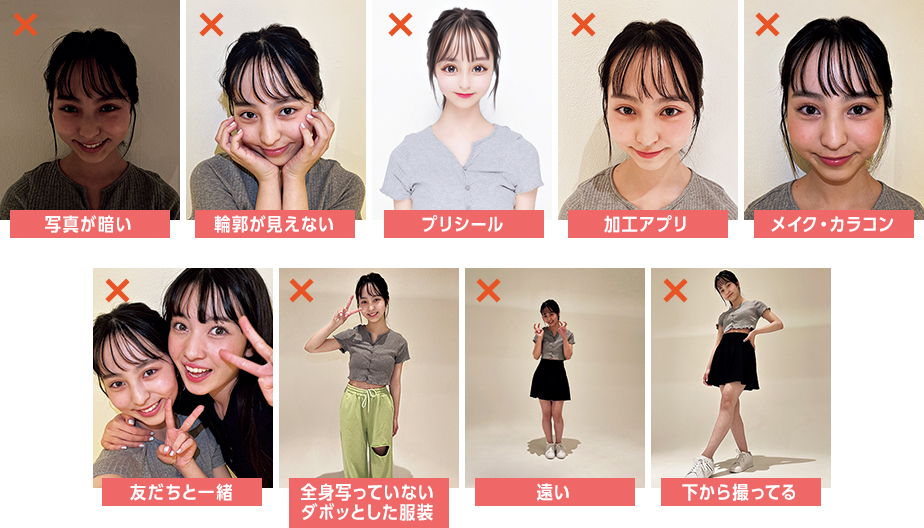 - ※メイクやカラコンはせず、すっぴんで撮ってね。