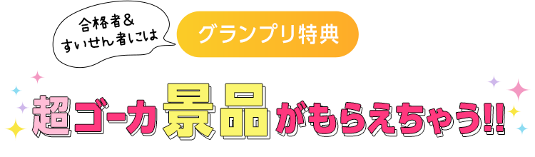 ※スマホのプレゼントは合格者本人のみです。すいせん者はもらえません。※写真はイメージです。機種は選べません。※すでにスマホを持っているなど事情がある場合は辞退可能です。※こちらのプレゼントを受け取られる場合、ワイモバイルとの契約が必須となります。※プレゼントは機種本体のみとなります。月々の使用料などはご負担いただきます。